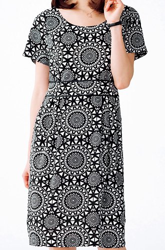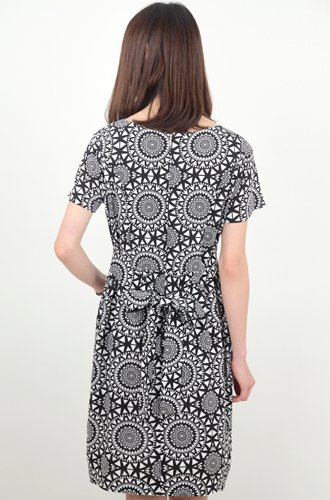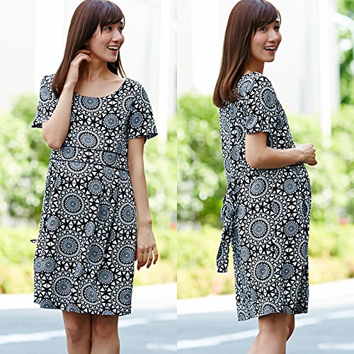 Angeliebe エンジェリーベ マタニティ プリント ワンピース 妊婦服 産前 産後 半袖 9号 オフ 白 × 黒
