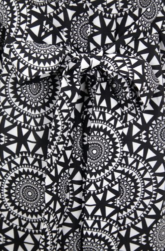 注目のレース柄を大胆にアレンジしたプリントは、柄に合わせたスクリーンを使い丁寧に染色。