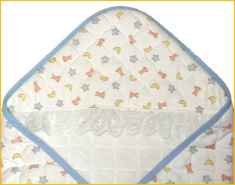 1枚有るととっても、便利な綿ニット製ベビー服のアフガン(おくるみ)ですあくるみは、お出かけの時やお昼ねの掛け物やバギーの掛け物など、色んな使い方が出来てとっても重宝いたします。小さなときは、何かと赤ちゃんを包む機会は多いものです。安全で柔らかな綿ニットはママの愛情そのものですね。細かなキルトをほどこした、日本製の高級アフガンです