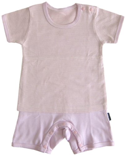 ベビーストーリー フライスボーダープリント 半袖肩開きロンパス 95cm ピンク RTP12303 日本製