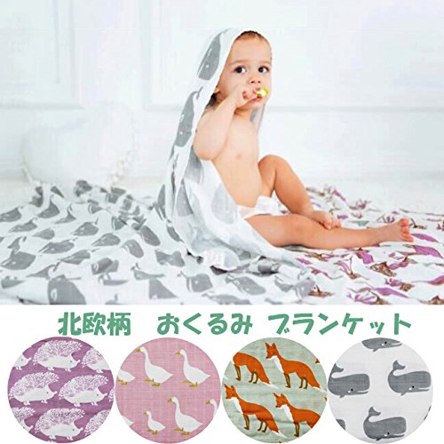 北欧柄 やわらか ブランケット おくるみ ベビー スワドル モスリン 大判 2:アヒル [並行輸入品]