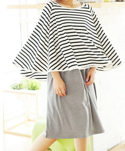 授乳ケープ ポンチョ 授乳服 360度安心 授乳カバー ボーダー&くま B [並行輸入品]