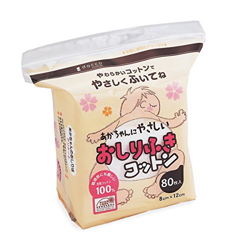 「ダッコ あかちゃんにやさしいおしりふきコットン 80枚入」は、良質な脱脂綿を使用したおしりふきコットンです。細い繊維で汚れを絡めとり、キレイに拭き取りがでいます。ソフトな肌ざわりで毛羽立ちにくく繊維残りがほとんどありません。拭き取りやすい8cm*12cmの手のひらサイズで、2ッ折りにしても十分な大きさです。 使用上の注意 ●赤み、はれ、かぶれ、かゆみなどの症状がみられたり、刺激を感じた場合は、使用を中止し、医師又は薬剤師に相談してください。