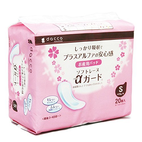 しっかり吸収でプラスアルファの安心感! お産用パッド ソフトレーヌαガード(S)20個入 約11cm×29cm 産後3、4日目から