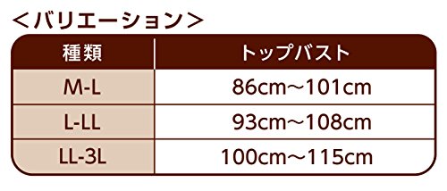 サイズ:M-L・トップバスト86cm-101cm、L-LL・トップバスト93cm-108cm、LL-3L・トップバスト100cm-115cm