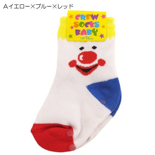 [新生児用靴下]ベビーアンクルソックス/ピエロ 【Aイエロー×ブルー×レッド 】