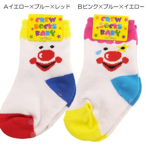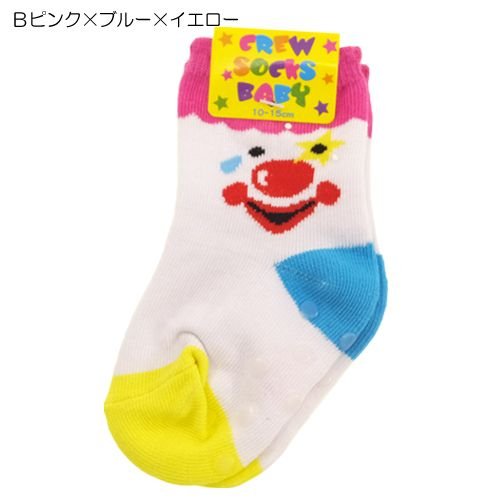 [新生児用靴下]ベビーアンクルソックス/ピエロ 【Bピンク×ブルー×イエロー 】