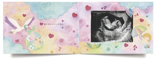 定期検診のときとっても楽しみにしてたエコー写真、トツキトウカの間にゆっくり母へと変わっていった自分、そして感動の出産・・・。 その小っちゃな手に大きな夢をつかんでね・・・そんな思いを込めて、あなただけ10ツキ10カ間を形に残しておきませんか。 ♪ 「10 ツキ10 カものがたり」 mongobessシリーズ 生まれるまでの10ツキ10カを、明るく楽しく彩ります。 【P1-2】 遠い空からやってきた。 (コメント・エコー写真が入ります) 【P3-4】 あぁ、ここにしよう。ここにきーめた♪ ここは、やさしくて、ふわふわで どこかなつかしい。 (コメント・エコー写真が入ります) 【P5-6】 ぷかぷか ゆらゆらあたたかい水の中で ゆっくり 大きくなった。(コメント・エコー写真が入ります) 【P7-8】 あ、きこえた!ママのよぶ声! トクトク・・ドキドキ。バクバク・・ドックンドックン。 いろいろな音のする中で・・(コメント・エコー写真が入ります) 【P9-10】ごくたびきこえる、やさしい声。 あいたくて あいたくて たまらなくなった、ある日のコトー。 (コメント・エコー写真が入ります)エコー写真が入ります"> 【P11-12】 ママの力におされながら、どんどん明るい中へ、 大きな声のする方へ。ぐるぐる・・・ドキドキ・・・うわあぁーっ エコー写真が入ります"> 【P13-14】 ママ、やっと会えたね♪ (誕生記録とお写真が入ります) 【P15-16】 ママからのメッセージが入ります。