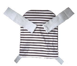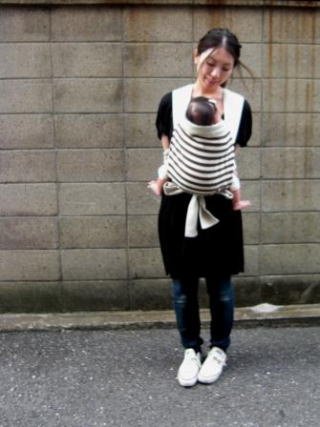 - 生成りの地にブラウンのボーダー柄の布でつくりました。シンプルでおしゃれなお母さんにぴったりです。