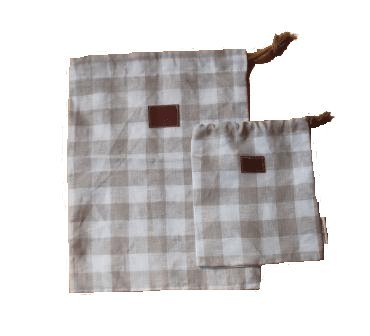巾着おむつポーチセット ナチュラルギンガムチェック