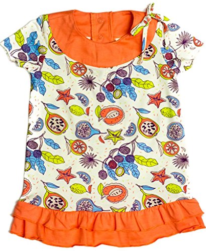 トロピカル フルーツ バウドフリルトップ100% スーパー ソフトオーガニック コットン低影響染料。インド製