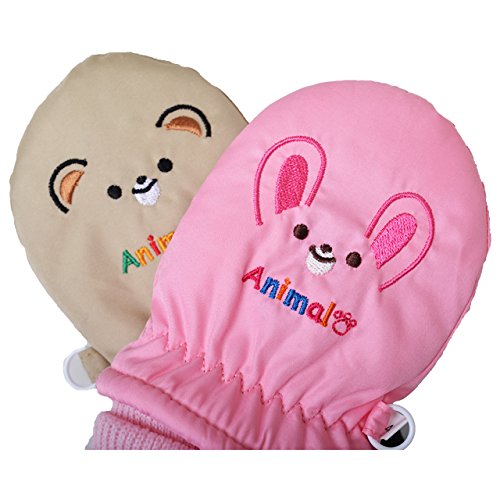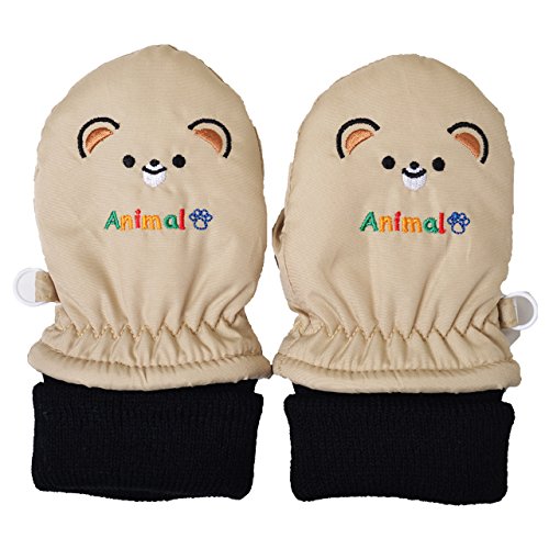 2016年 冬物 防寒 うさぎ・くま刺繍 スノー手袋 ミトン グローブ ベージュ◇1-2才
