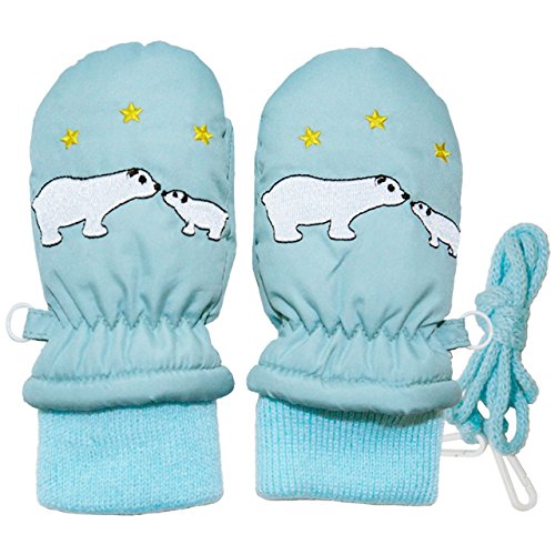 (290003)2017年 冬物 スノー手袋 防寒衣料 撥水加工 ミトングローブ 17.白クマ刺繍-ミント◇1-2才