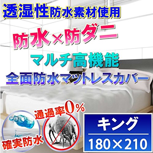 全面 防水 マットレスカバー 防水シーツ (キング 180×210cm) 洗えない マットレスをダニやカビから守る!蒸れを逃がす 【国内公的検査機関で品質検査済(防水性 透湿性 ダニ 通過率0%)】【防水防ダニW効果】【透湿性防水素材で蒸れは逃がして汚れはブロック】【寝具汚れ防止】アレルギー 喘息の対策に有効 寝汗 おねしょ 黄ばみ カビ アレルギー対策 脱水 乾燥機 使用可