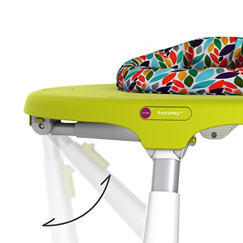 - 赤ちゃんが大きくなったら、おもちゃを外してシート部分に付属の天板を載せるとプレイテーブルに変身。テーブルは4段階に高さ調節可能です。テーブルの脚は内側に折りたためるので、コンパクトに収納できます。