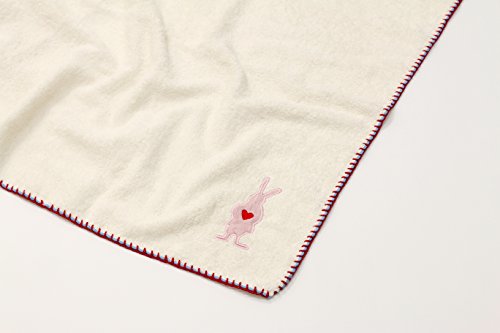 フチのステッチがとてもかわいらしい、出産祝のギフトにもおすすめのアイテムです! タオルのフチに沿って2カラーのステッチが施されています。ピンクのタオルには「うさぎ」、ブルーには「猫」、ブラウンには「キノコ」の大きな刺繍がついています。ひっかけて使える便利なループ付き。