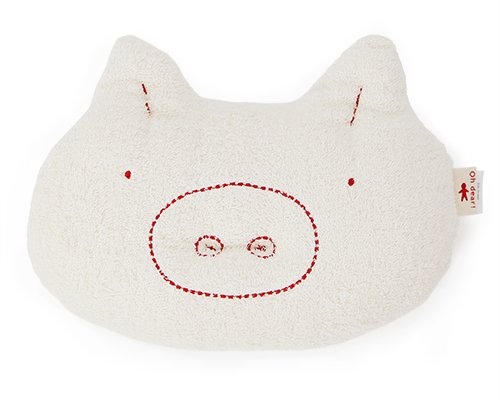 陽気なPIGのキャラクターがやわらかなピローになりました。安心のオーガニックコットン100%。赤ちゃんの普段の枕ではなく、お母さんの腕がしびれないようにする便利アイテムです。