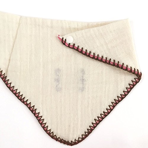 『2カラーステッチバンダナスタイ』 カギステッチがアクセントに入ったバンダナスタイです。オーガニックコットン100%使用した2枚重ねのガーゼ地で、ふんわり軽やか、水分も素早く吸収します。2段階調節の便利なスナップボタン付き。ご出産のお祝いに喜ばれます。