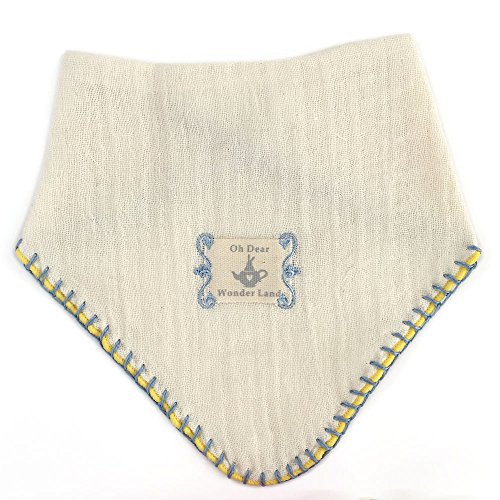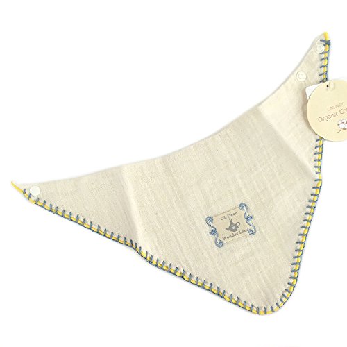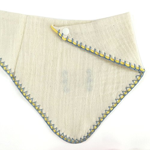 『2カラーステッチバンダナスタイ』 カギステッチがアクセントに入ったバンダナスタイです。オーガニックコットン100%使用した2枚重ねのガーゼ地で、ふんわり軽やか、水分も素早く吸収します。2段階調節の便利なスナップボタン付き。ご出産のお祝いに喜ばれます。