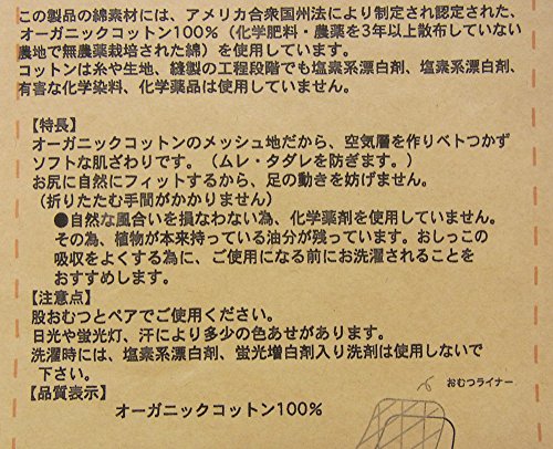 最もデリケートな部分にこそオーガニックコットンの優しさを。ベストセラーの「おむつライナー2枚セット」です。おむつの上に重ねて使うタイプのおむつライナーです。やわらかメッシュで通気性が良くてかぶれにくい。メッシュ地なので汚れがつきにくく、落ちやすくお洗濯もラク。紙おむつにもメッシュライナーをはさむ使い方もおすすめです。