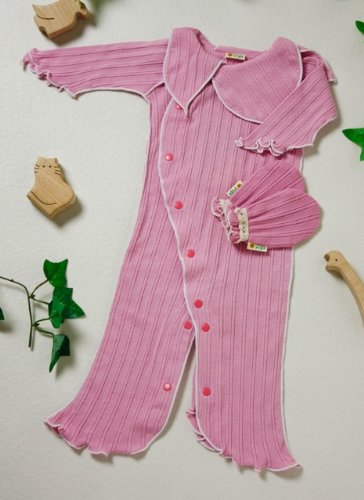 yuga☆【箱入り】「妖精ロンパース長袖 60cm + ミトン 2点セット いちご染め」 オーガニックコットン100% 天然染め ベビー 服 子ども服 キッズ 女の子 男の子 兼用 ボディ カバーオール 襟付き 長袖 セット品 出産祝い プレゼント 綿100% 無地 おもてなし賞受賞!