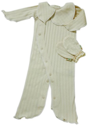 yuga☆【箱入り】「妖精ロンパース長袖 60cm + ミトン 2点セット 生成り」 オーガニックコットン100% 天然染め ベビー 服 子ども服 キッズ 女の子 男の子 兼用 ボディ カバーオール 襟付き 長袖 セット品 出産祝い プレゼント 綿100% 無地 おもてなし賞受賞!