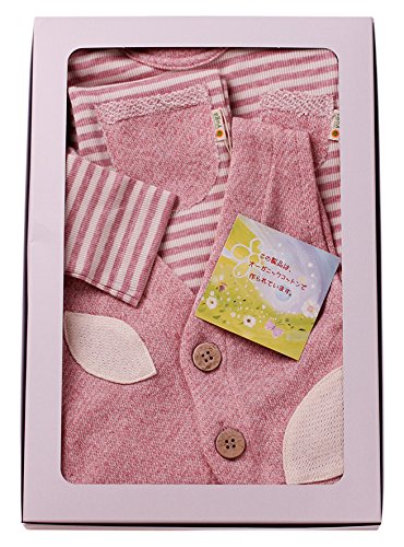 yuga☆【箱入り】「ボーダー・Tシャツ + レギンス + 小人のベスト 3点セット ピンク 80cm 」オーガニックコットン100% 天然染め ベビー 服 子ども服 キッズ 女の子 男の子 兼用 Tシャツ 長袖 ズボン ベスト セット品 出産祝い プレゼント 綿100%