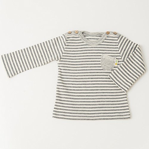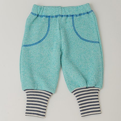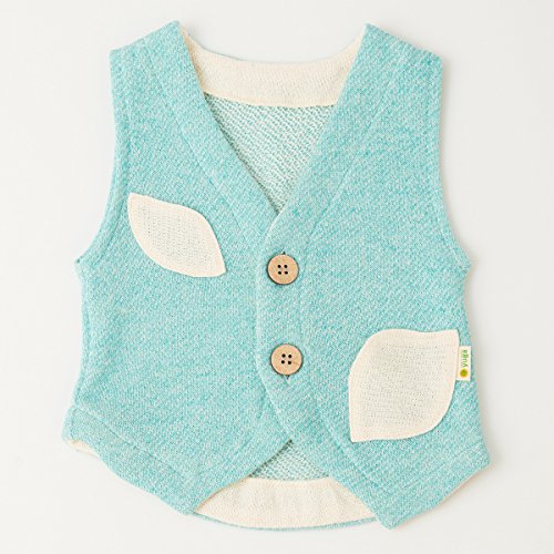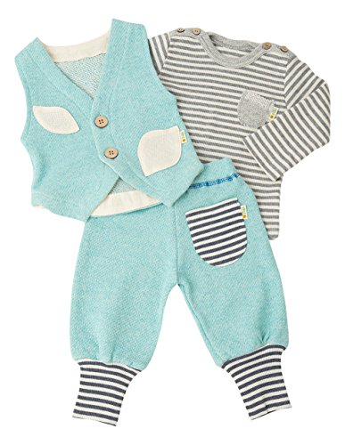 yuga☆【箱入り】「小人のベスト+バルーン・パンツ+ボーダー・Tシャツ 3点セット ターコイズ×グレー 80cm 」 オーガニックコットン100% ベビー 服 男の子 女の子 兼用 ロンT チョッキ ズボン 出産祝い プレゼント 綿100%
