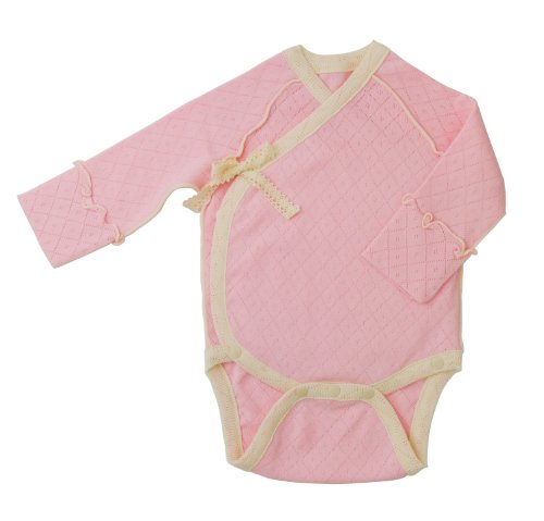 yuga☆前あきボディ 長袖 もも染め 60cm オーガニックコットン100% 天然染め ベビー 服 子ども服 キッズ 女の子 男の子 兼用 ボディ ロンパース 前開き 肌着 長袖 出産祝い プレゼント 綿100% 無地 おもてなし賞受賞!