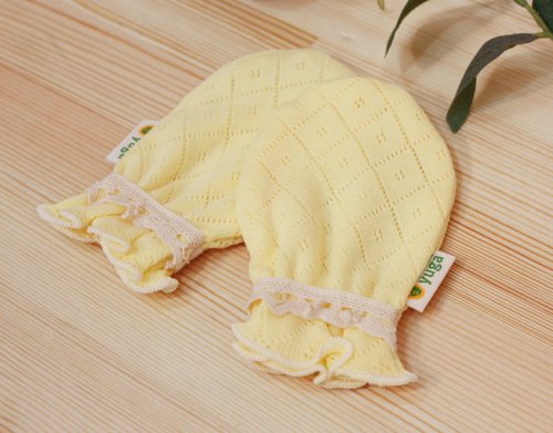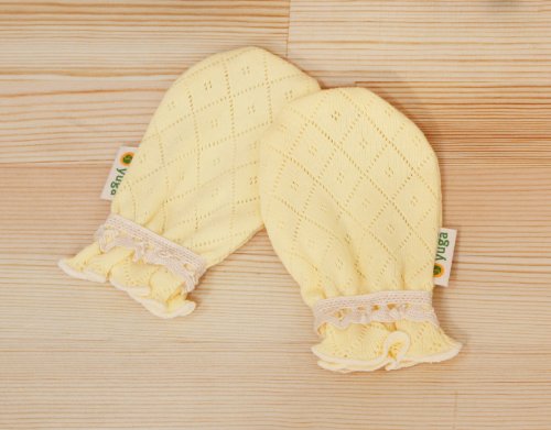 yuga☆ミトン ダイヤ柄 ひまわり染め オーガニックコットン100% ベビー 服 男の子 女の子 兼用 手袋 出産祝い プレゼント 天然染め 綿100% おもてなし賞受賞!