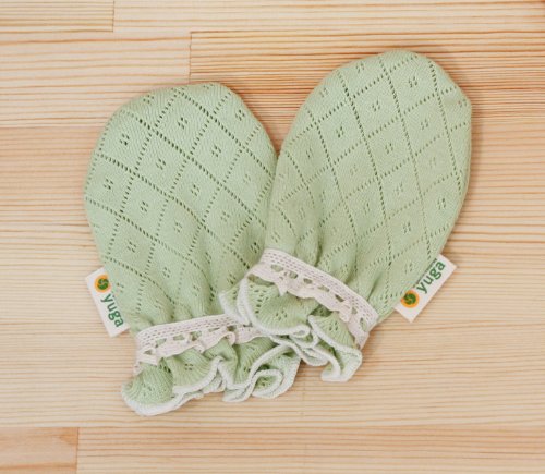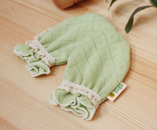yuga☆ミトン ダイヤ柄 セージ染め オーガニックコットン100% ベビー 服 男の子 女の子 兼用 手袋 出産祝い プレゼント 天然染め 綿100% おもてなし賞受賞!