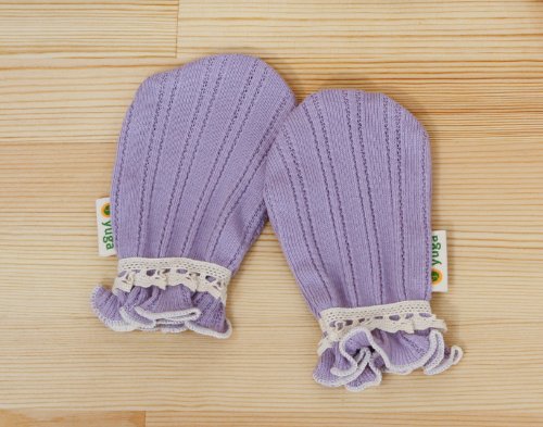 yuga☆ミトン ストライプ柄 ラベンダー染め オーガニックコットン100% ベビー 服 男の子 女の子 兼用 手袋 出産祝い プレゼント 天然染め 綿100% おもてなし賞受賞!