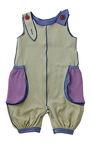 yuga☆バルーン・ロンパース セージ染め 80-90cm オーガニックコットン100% 天然染め ベビー 服 子ども服 キッズ 女の子 男の子 兼用 ロンパース アジャスター付き ノースリーブ 肩なし 出産祝い プレゼント 綿100% おもてなし賞受賞!