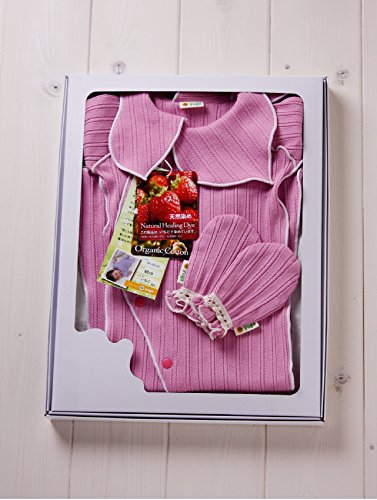 yuga☆【箱入り】「妖精ロンパース半袖 70cm + ミトン 2点セット いちご染め」 オーガニックコットン100% 天然染め ベビー 服 子ども服 キッズ 女の子 男の子 兼用 ボディ カバーオール 襟付き 半袖 セット品 出産祝い プレゼント 綿100% 無地 おもてなし賞受賞!