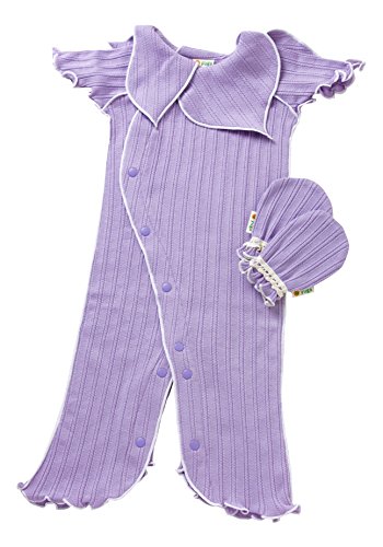 yuga☆【箱入り】「妖精ロンパース半袖 60cm + ミトン 2点セット ラベンダー染め」 オーガニックコットン100% 天然染め ベビー 服 子ども服 キッズ 女の子 男の子 兼用 ボディ カバーオール 襟付き 半袖 セット品 出産祝い プレゼント 綿100% 無地 おもてなし賞受賞!