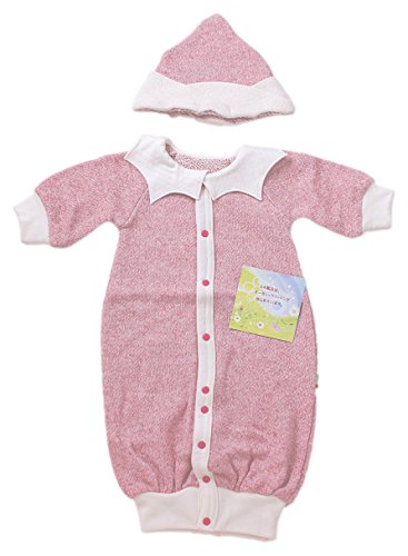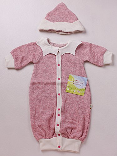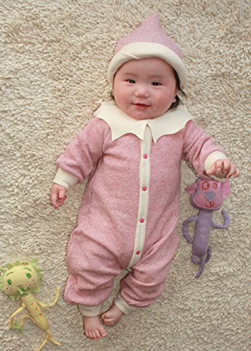 yuga☆【箱入り】「ピエロの2Wayロンパース 60cm + 帽子 2点セット ピンク」 オーガニックコットン100% 天然染め ベビー 服 子ども服 キッズ 女の子 男の子 兼用 ボディ カバーオール 襟付き 長袖 セット品 出産祝い プレゼント 綿100% 無地