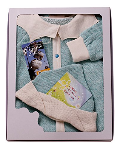 yuga☆【箱入り】「ピエロの2Wayロンパース 70cm + 帽子 2点セット ターコイズ」 オーガニックコットン100% 天然染め ベビー 服 子ども服 キッズ 女の子 男の子 兼用 ボディ カバーオール 襟付き 長袖 セット品 出産祝い プレゼント 綿100% 無地