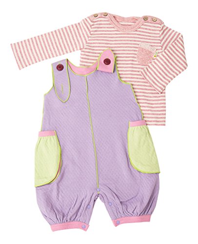 yuga☆【箱入り】「バルーン・ロンパース 70cm - 80cm +ボーダー・Tシャツ 80cm 2点セット ラベンダー染め」×ピンク オーガニックコットン100% 天然染め ベビー 服 男の子 女の子 兼用 出産祝い プレゼント 綿100% おもてなし賞受賞!