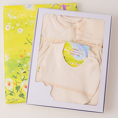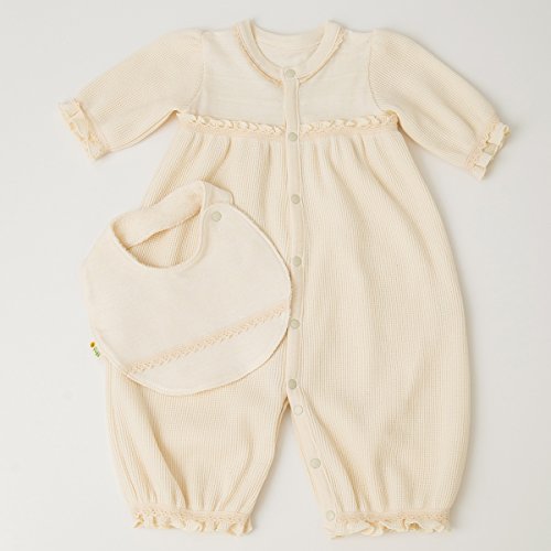 yuga☆【箱入り】「ワッフルの2Wayロンパース 60cm +レース・スタイ 2点セット 生成り」オーガニックコットン100% よだれかけ カバーオール ベビー 服 子ども服 キッズ 女の子 やわらか 白 生成り お宮参り 退院 出産祝い プレゼント 綿100%