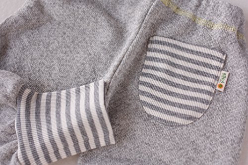 yuga☆【箱入り】「コンビ・Tシャツ 80cm + バルーン・パンツ 80cm 2点セット グレー」 オーガニックコットン100% 天然染め ベビー 服 子ども服 キッズ 女の子 男の子 兼用 Tシャツ 長袖 ズボン セット品 出産祝い プレゼント 綿100% 無地