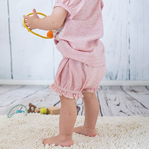 優雅 yuga☆【箱入り】「パフスリーブ・チュニック 80cm +ショートパンツ・ブルマ 80cm 2点セット ピンク」 オーガニックコットン100% ベビー 服 女の子 Tシャツ パンツ 出産祝い プレゼント 綿100%