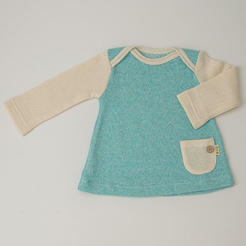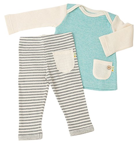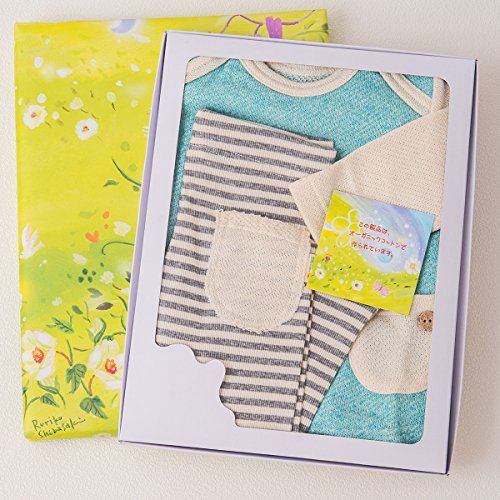優雅 yuga☆【箱入り】「コンビ・チュニック 90cm +ボーダー・レギンス 90cm 2点セットターコイズ×グレー」 オーガニックコットン100% ベビー 服 男の子 女の子 兼用 ロンT トレーナー パンツ 出産祝い プレゼント 綿100%