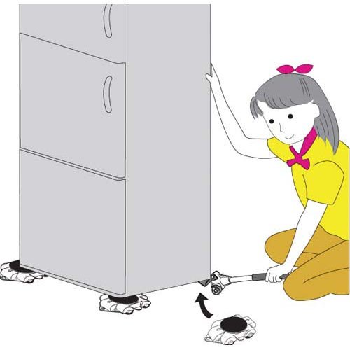 テコの原理で持ち上げて、台車を差し入れてセット。重いオフィス家具の移動の移動、模様替えやお掃除の為の移動など、職場やご家庭にある重たい物の持ち上げと移動がひとりの力でも楽にできます。