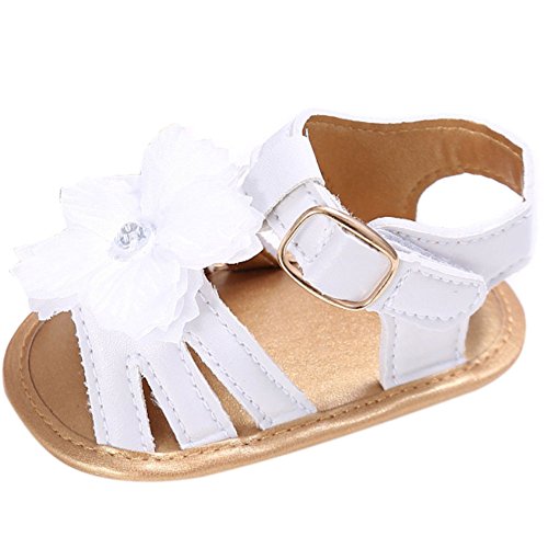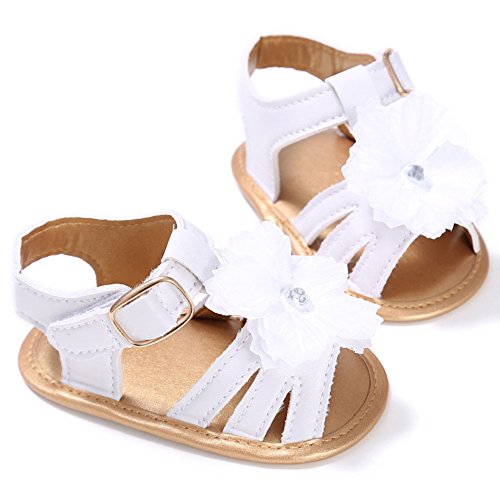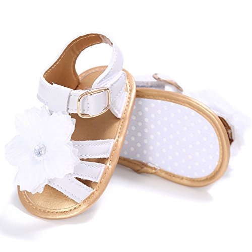 (カエルフロッグ)女の子 ベビー おしゃれ 靴 フラワー モチーフ サンダル 赤ちゃん キッズ 履き心地 柔らか マジックテープ 滑り止め 付き 可愛い 花 女の子 シューズ ゴールドXホワイト 0-6ヶ月 夏