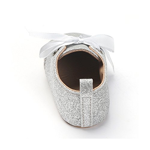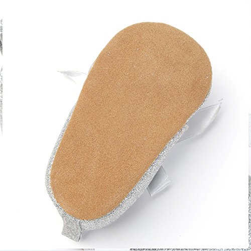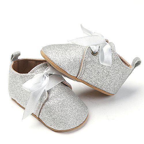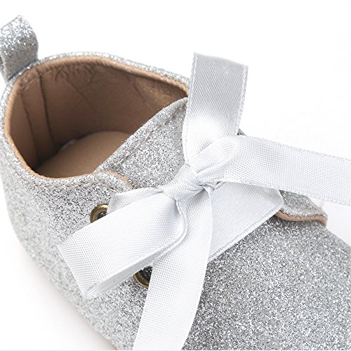 ガールズスニーカー プリンセスシューズ 女の子 赤ちゃん 可愛い蝶結び スパンコール付き靴 女児 柔らかい 快適 新生児 ソフトラバー 結婚式 出産の祝い PUレザー シルバー 0-6ヶ月に対応 春 夏 秋