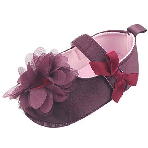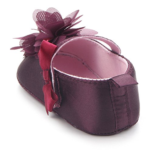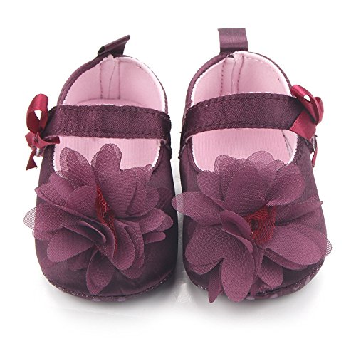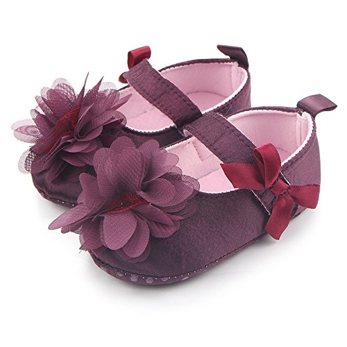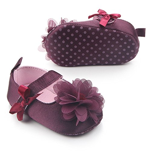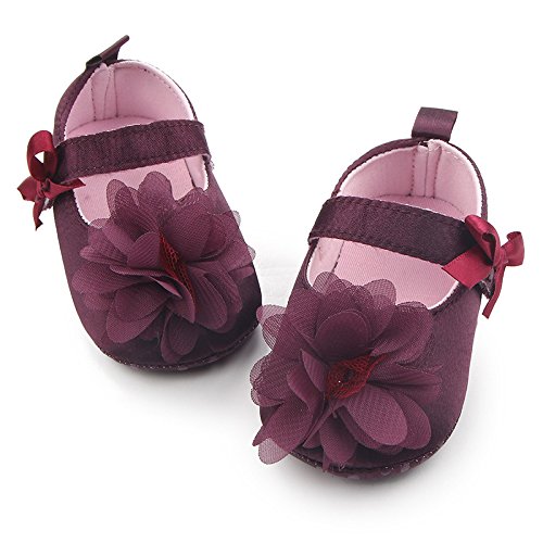 (カエルフロッグ)女の子 ベビー おしゃれ 靴 花柄 蝶結び 付き 赤ちゃん 柔らか マジックテープ 可愛い シューズ ダークパープル 0-6ヶ月に対応 夏