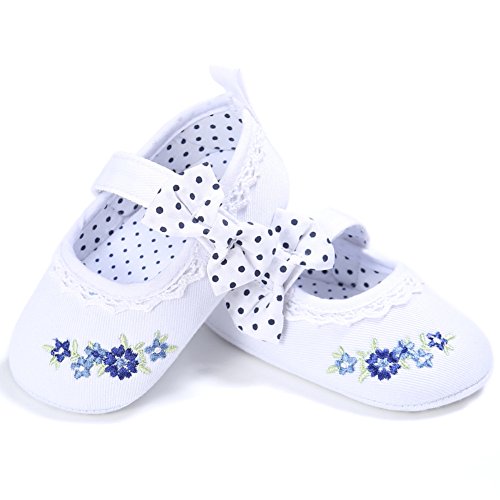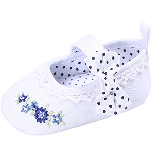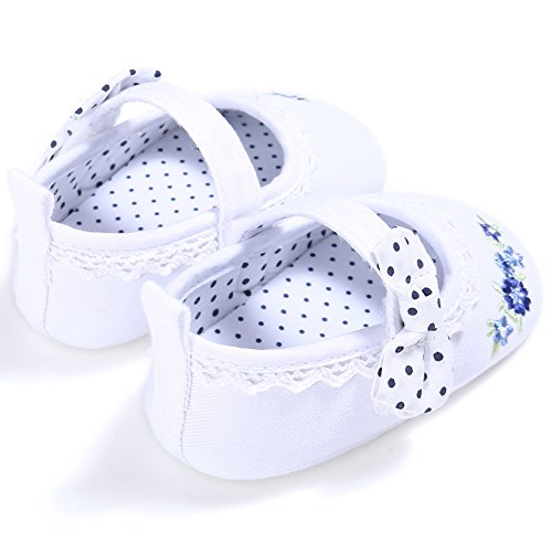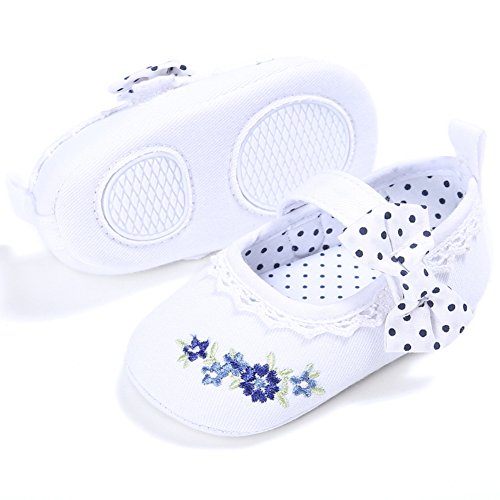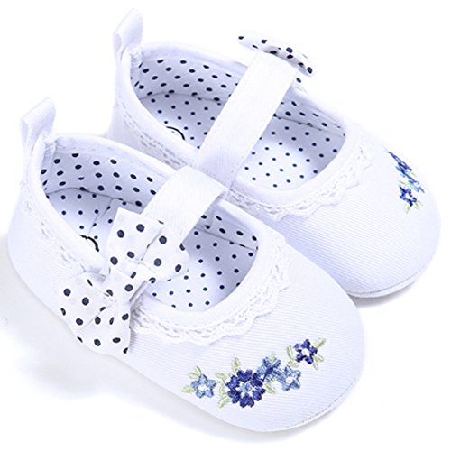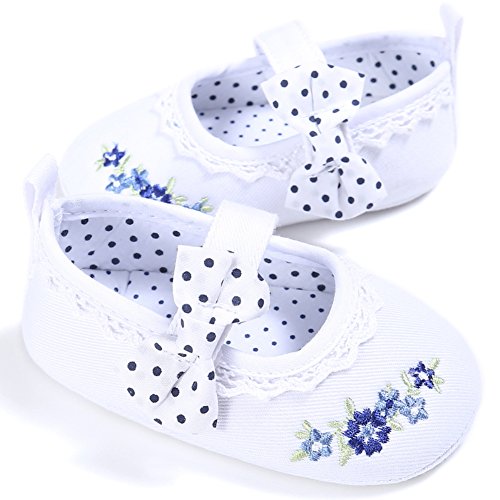(カエルフロッグ)女の子 赤ちゃん 蝶結び 花柄 レース 付き ズック 靴 ベビー 可愛い シューズ ホワイト 6-12ヶ月に対応 春 夏 秋