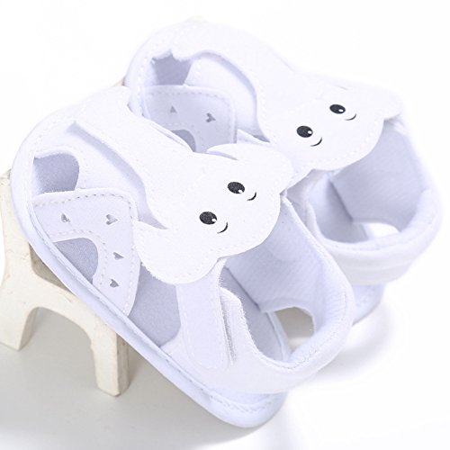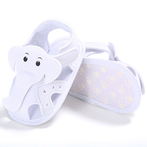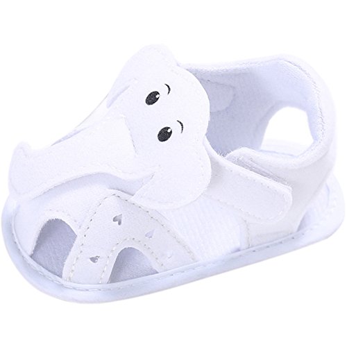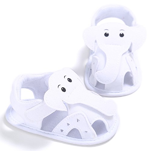 (カエルフロッグ)ベビーサンダル 可愛い 象 モチーフ 男児のサンダル つま先 保護 男の子の靴 柔らかい 綿布 ソフト底の靴 軽量 快適 マジックテープ付け 赤ちゃんの歩行靴 ホワイト 12-18ヶ月に対応 夏