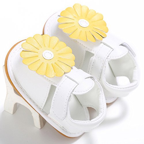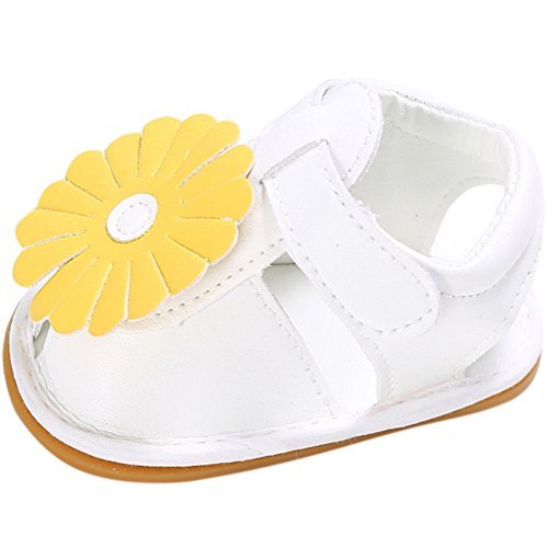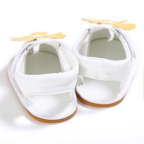 ガールズサンダル キッズ可愛いプリンセスシューズ 女児花付きフフォーマル靴 綺麗な王女靴 滑り止め ホワイト/白い 12cm 6-12ヶ月に対応 夏