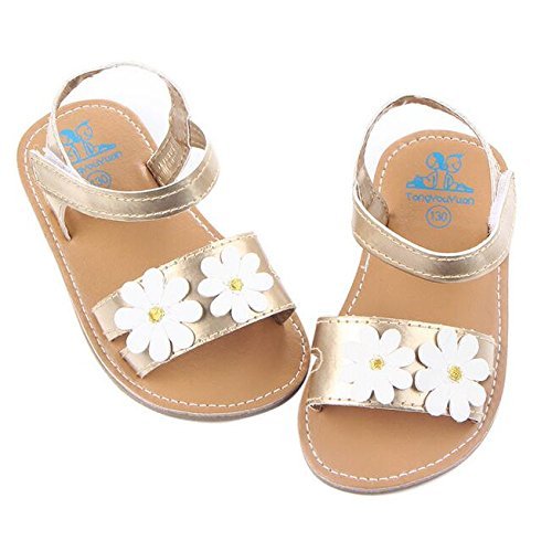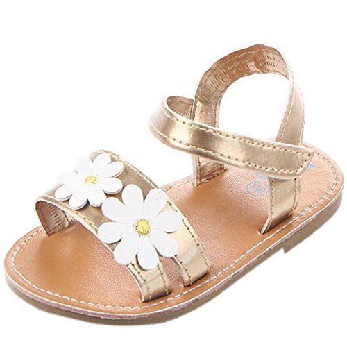(カエルフロッグ) 女の子 きれい 花柄 サンダル 赤ちゃん キッズ 履き心地 柔らか マジックテープ 滑り止め 可愛い デザイン 女児 シューズ ゴールド 12-18ヶ月に対応 夏